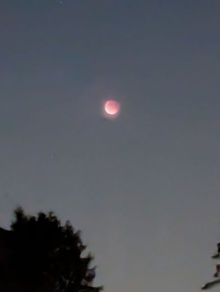Am Sonnntag, 7. September2025 fand am Abend eine totale Mondfinsternis statt. In Deutschland war die MoFi beobachtbar, allerdings war die Verdunkelung des Mondes bereits bei Mondaufgang weit fortgeschritten; wegen Wolken am Horizont konnte man den Blutmond daher oft nur am Ende der Kernschattenphase oder danach sehen. Ein paar Bilder sind dennoch gelungen: